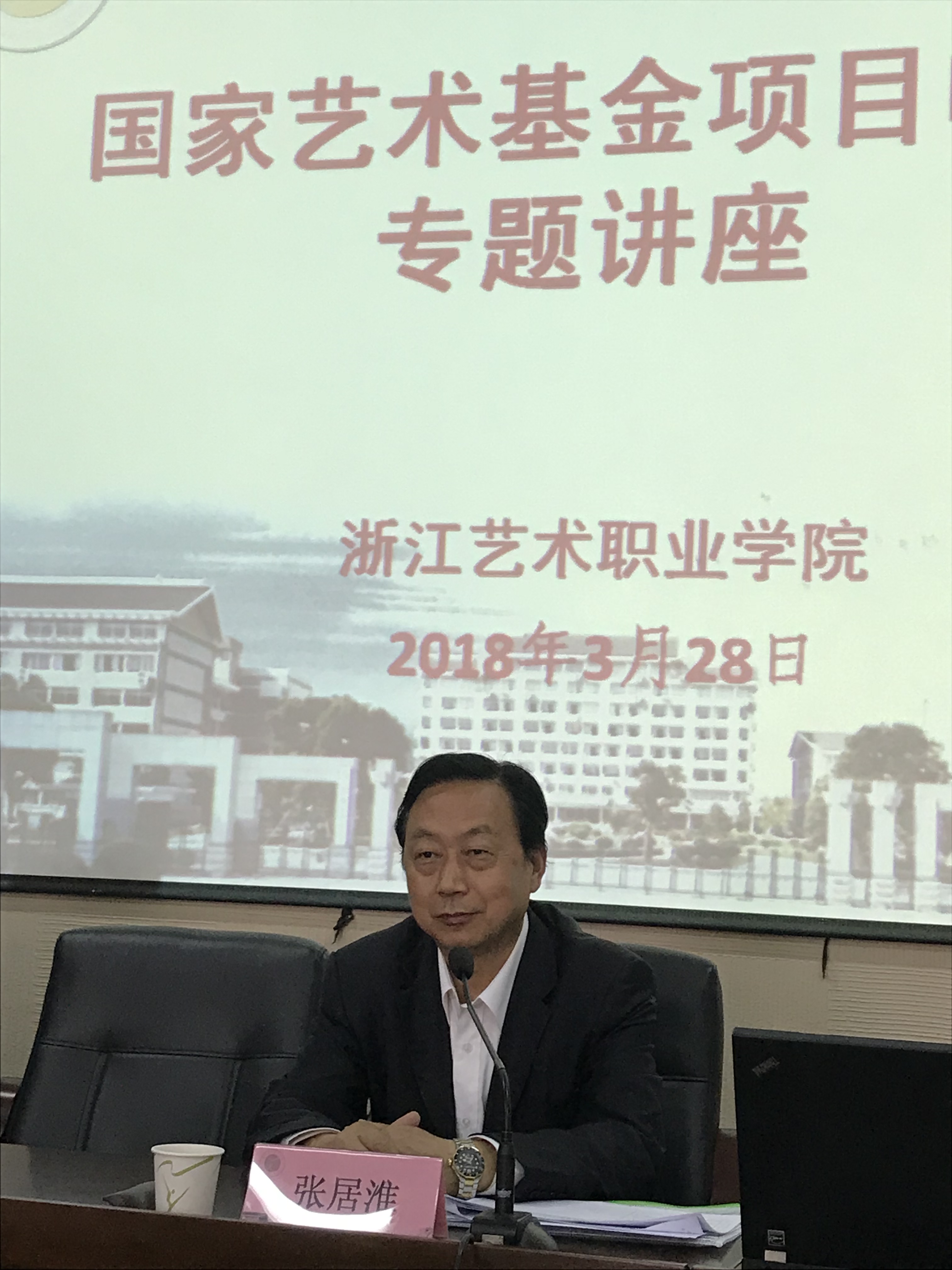 为切实做好2019年度国家艺术基金申报工作,3月28日,我校特邀国家艺术基金终评评委、国家一级编导、原安徽省演艺集团党委书记张居淮前来作国家艺术基金申报专题讲座。讲座在13号楼101会议室举行,各系部负责人、教研室主任、专业带头人、现任校创作委员会委员、骨干教师等全院59名教师听取了讲座。