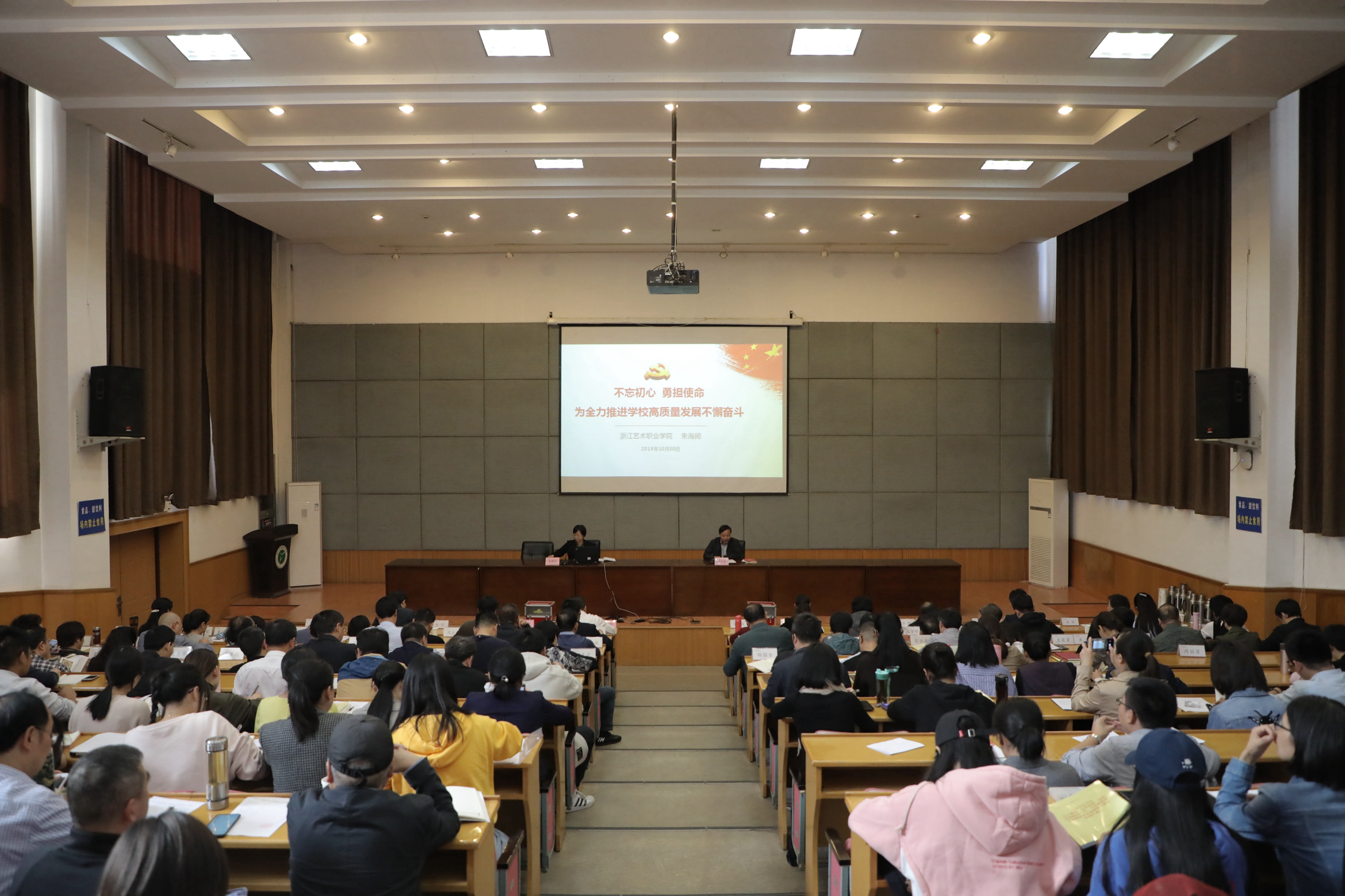 这是一次调研成果的转化。在专题党课前两天,学校召开“不忘初心、牢记使命”主题教育调研成果交流会,校党委班子成员围绕“筹建浙江艺术职业教育集团”“学校‘十四五’发展规划思路研究”等9个课题,逐一开展调研成果交流。在专题党课中党委班子同志们认为,要强化调研成果转化,把调研成果转化为解决问题的实际行动。要以学校非遗资源的综合现状入手,深入思考继承、弘扬中华优秀传统文化对学校科研、创作乃至专业建设、社会服务、文化传承所产生的巨大潜力。加深对高校特有的优秀传统文化传承的重要性认识,找准学校在弘扬优秀传统文化方面科研、创作等领域的问题,激发广大师生的积极性和创造性。要根据调研发现问题,进一步修订完善采购及招投标管理办法,维修项目管理办法,低值耐用品、易耗品、材料管理办法,电子卖场采购办法,坚决做到立说立行立改。要进一步健全完善教师队伍制度建设,淬炼教师队伍在加强学校师德师风建设中守初心担使命。