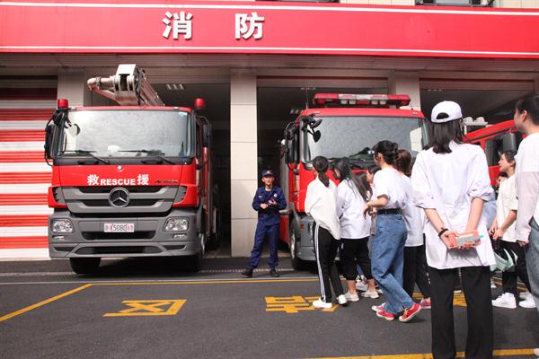 消防队员为音乐系小分队们详细介绍了各种应急消防车功能以及车内消防设备用途,让同学们试穿消防服,了消防制服的性能,体会战士们的使命与担当。