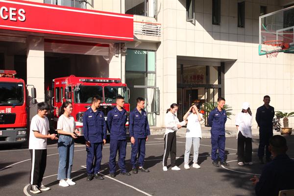 戚晓凡同学说:“走进消防大队,了解到原来消防车还分这么多种类,消防服这么重,意识到原来我们的安全生活都是因为有他们在背后默默付出。我们有着相仿的年纪,却有着全然不同的人生经历。这场演出是我们带来的一场联欢,也是我们对消防战士们的致敬与感谢!”