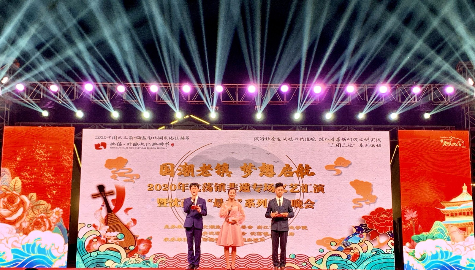 “国潮老镇 梦想起航”,11月7日是2020年沈荡镇第三届开酿文化旅游节开酿日,同学们的文艺演出为沈荡老镇注入了青春活力。群舞《龙拳》、歌舞《迭·香》、群舞《美人吟》、群舞《迪斯科派对》,同学们优雅的舞姿、具有感染力的演唱让现场变得激情澎湃,观众叫好声不断。