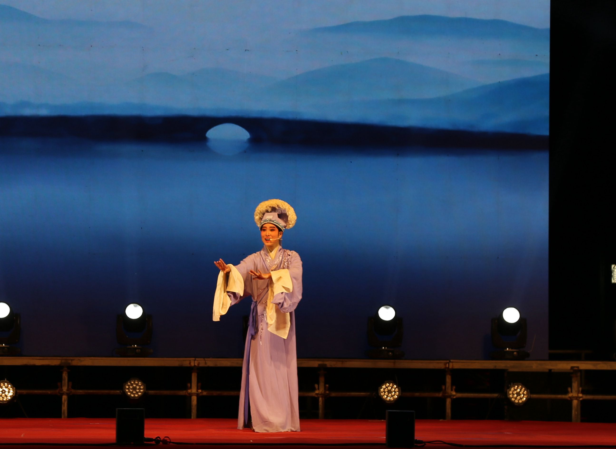 戏剧系表演艺术专业学生现场表演情景剧《江南小镇》、RAP《庆功酒》、小品《“摊”上事儿》、表演唱《小孩的星星》、朗诵《最美逆行者》、快板《别样风采看浙江》等。表演的音乐韵律感极强,舞蹈轻盈、富有诗意,如行云流水,美得令人窒息,目不暇接。同学们以多元艺术语汇,讲述精彩中国故事,礼赞新时代,颂扬新征程,细微动人的艺术表现深深感染了现场观众。戏曲学院学生表演的传统越剧折子戏《白蛇传·断桥》《梁祝·十八相送》《梁祝·回十八》深受当地民众的喜爱,同学们的唱功让当地群众惊叹。小品《“摊”上事儿》从小视角展现了“00后”的青春风采和精神风貌,观众直呼“真有味道!”