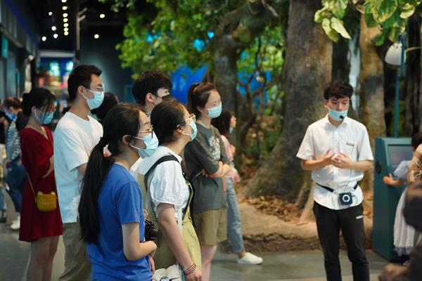 在研究馆员、文化管理系特聘教授赵盛彪的带领下,同学们参观了馆内“地球生命故事”“丰富奇异的生物世界”“绿色浙江”“狂野之地——肯尼斯·贝林世界野生动物展”以及“福禄寿喜·美好生活——中国吉祥文化特展”等。