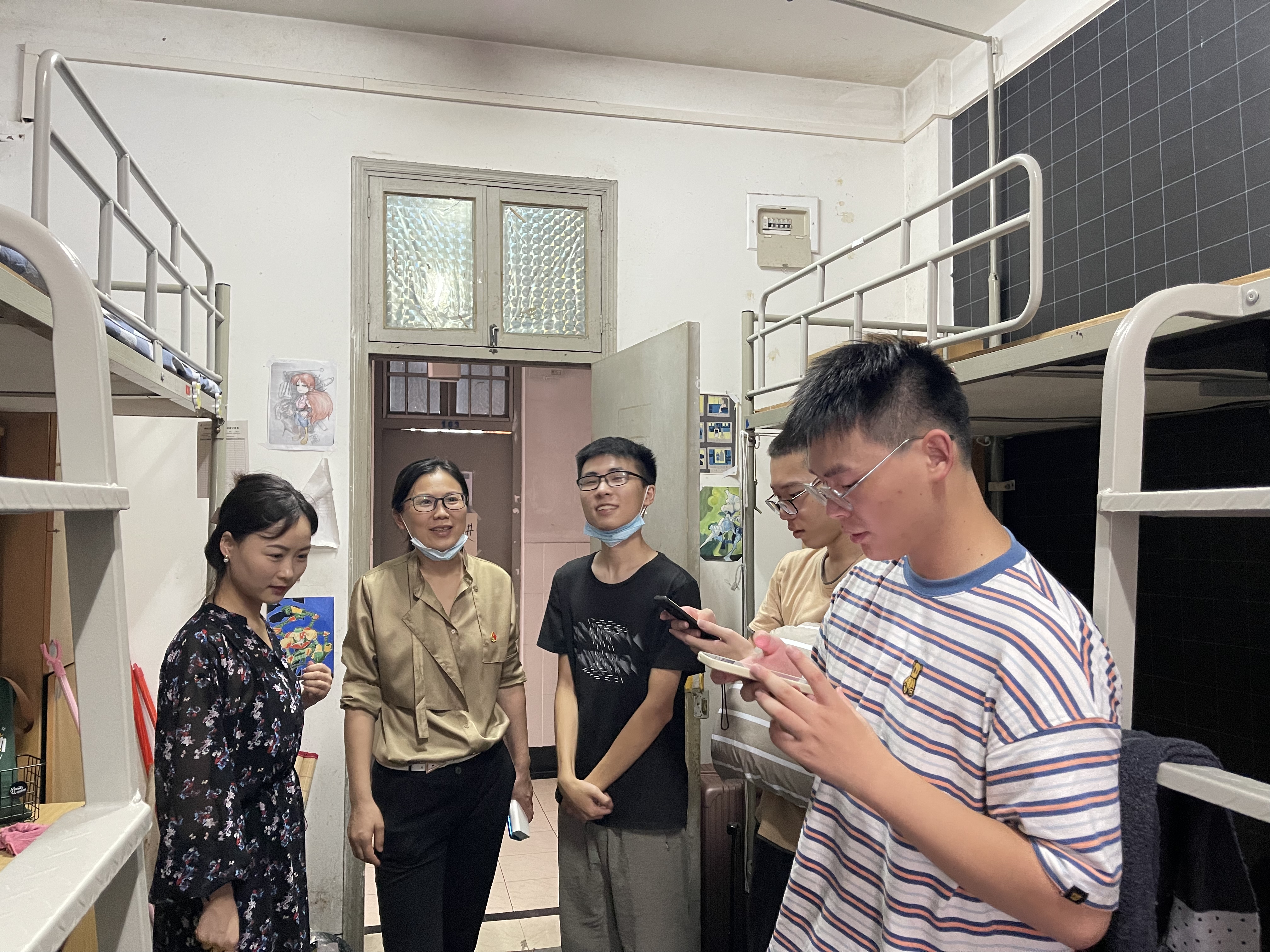 当天下午,系领导班子、辅导员深入走访宿舍看望新生。详细了解新生的宿舍入住情况,并送去亲切的慰问与关怀。每到一个宿舍,他们第一个问题就是“你们都来自哪里?”。以简单的问题入手,拉近了师生距离。走访过程中,新生表达了在生活、学习上的一些疑惑,随行老师也一一给予解答。老师们鼓励同学们积极进取、合理规划三年时光,脚踏实地认真学好专业知识,收获一个充实的大学生活!