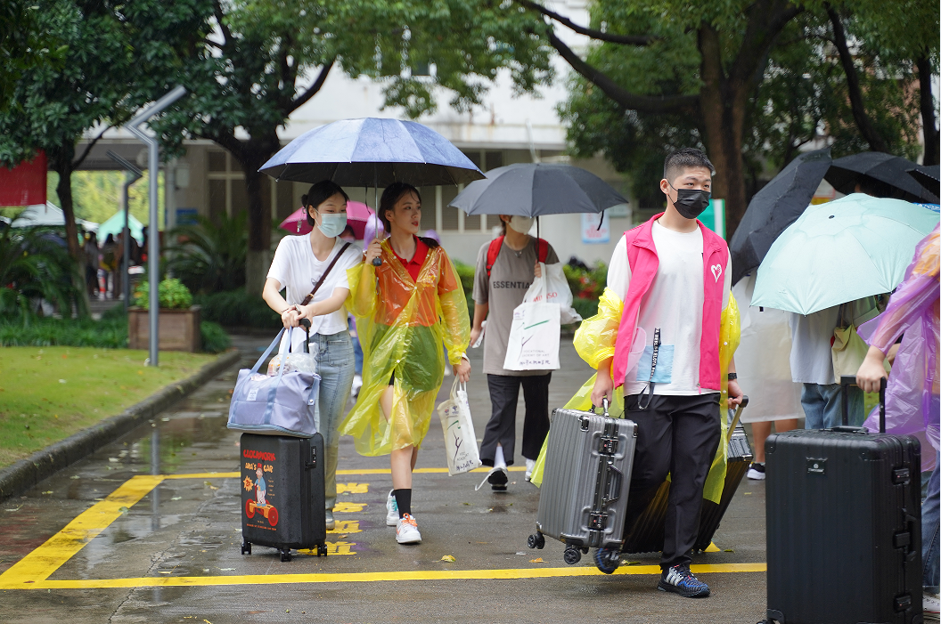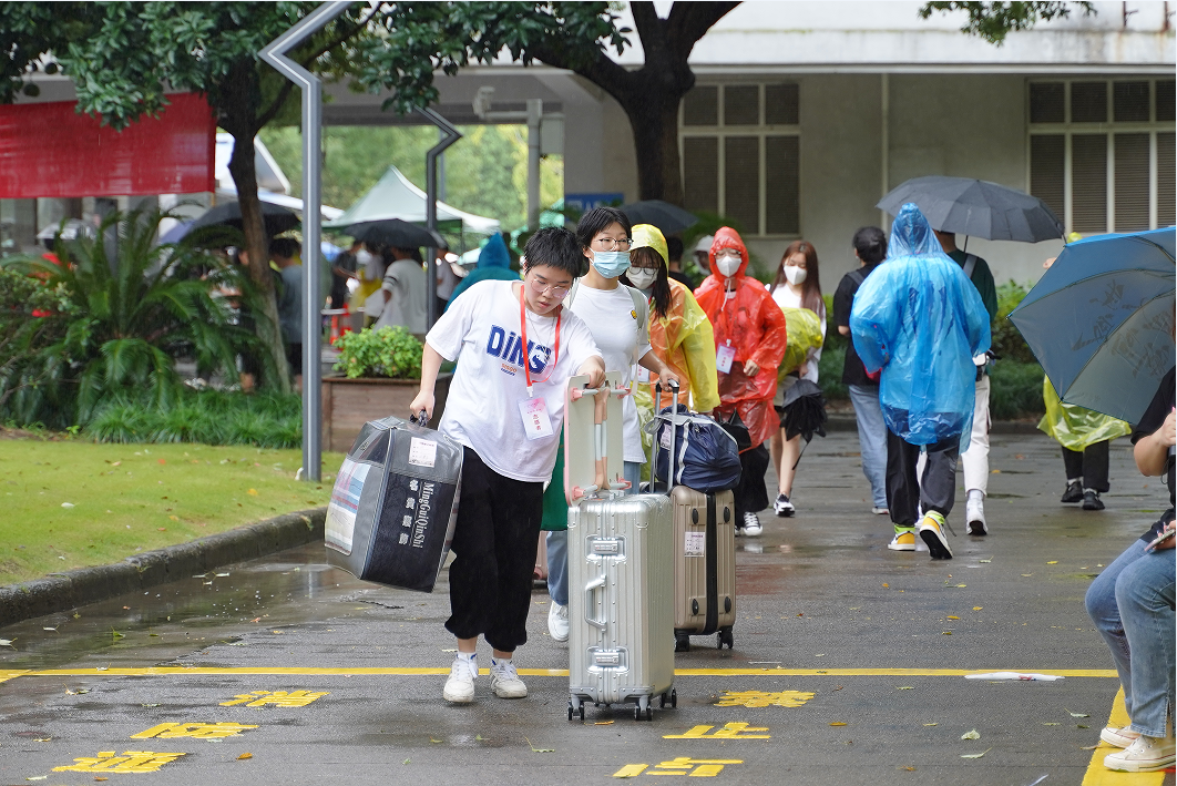 虽然天空下起了小雨,但雨水丝毫无法冲刷同学们的热情。兴奋,激动,却也少不了紧张,但更多的还是憧憬。他们的大学生活,以脚下这块土地为起点,开始!