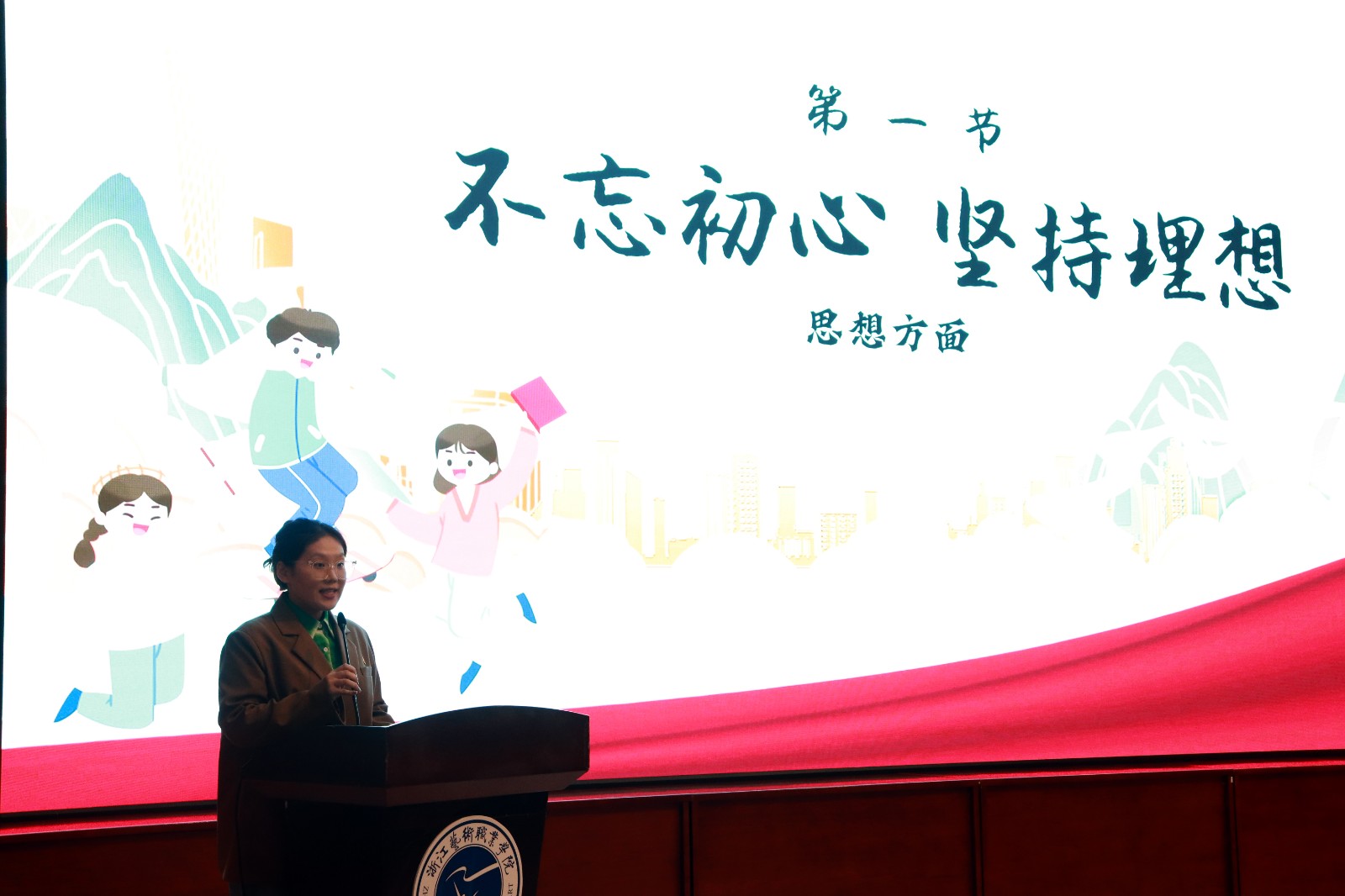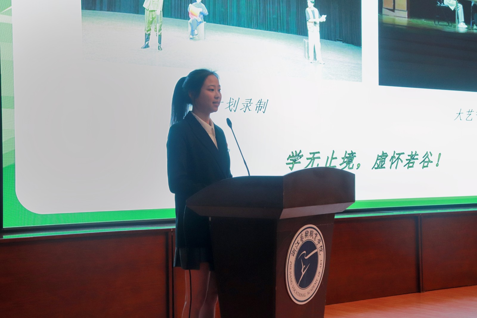 由各二级学院选拔推荐的7名候选同学参加了现场展示。有不忘初心、厚积薄发、守护梦想的俞嘉雯同学,有赓续黄龙文脉、传承浙艺初心的赵欣妮同学,有通过蝶变、探索创融、不断践行传承使命的左彤彤同学,有用力生长拿作品滋养自己、用温情回馈家乡的张锶悦同学,有以梦为马、此生与戏结缘的李梦凡同学,有心系乡村、毅然投身基层文化建设、勇担共富使命的许愿同学,有深耕舞坛十余年、披荆斩棘百炼成钢的学生舞者葛子仪同学。她们结合专业学习、社会实践、工作和生活经历,从理想信念、专业素养、道德风尚、社会工作与志愿服务等方面讲述自己在浙艺学习的收获和心得,精彩的演讲、丰富的经历和成功的收获,感染了现场师生。
