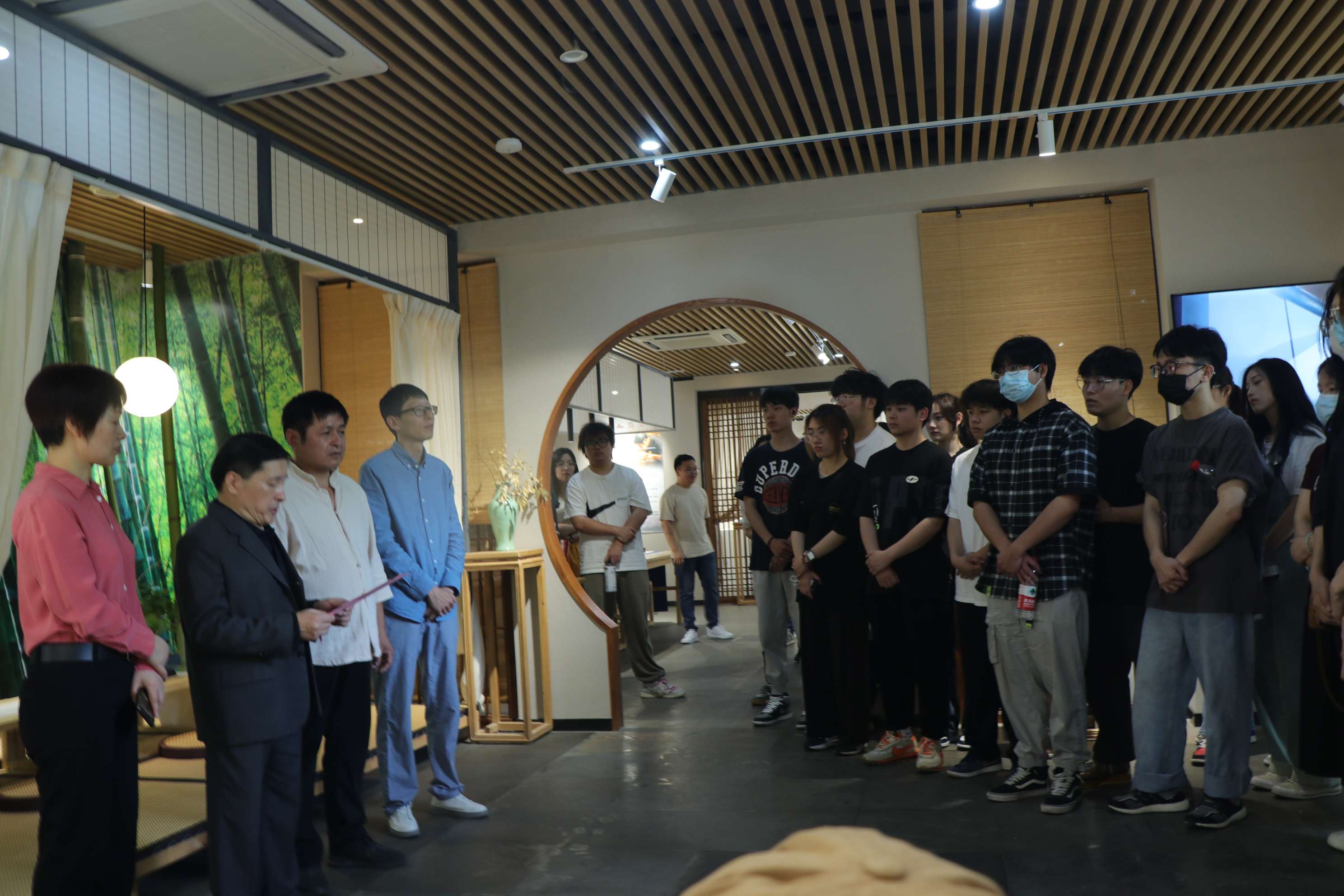 展览现场,朱中华为现场师生讲授了富阳竹纸制作技艺的发展历史,讲述从一根毛竹制作成一张纸的精细工艺和高超技术要求。同时带领现场师生体验“抄纸”流程,感受传统技艺的魅力。