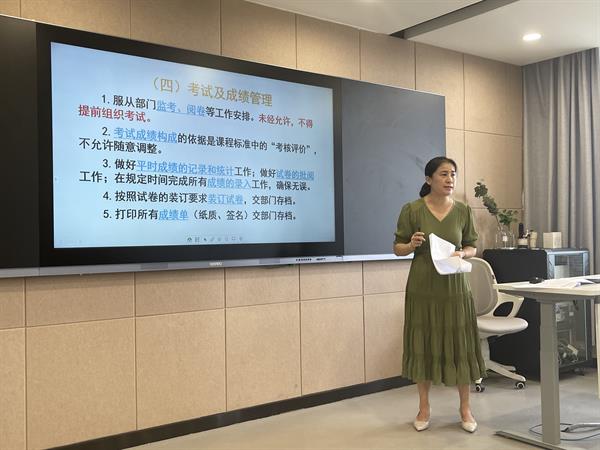 随着学校办学规模和质量的不断扩大提升,基础教学部(公共体育部)将有9位新教师加入。为帮助新入职教师尽早适应工作环境,尽快熟悉部门整体情况,8月31日,基础教学部(公共体育部)在8707智慧教室组织召开新入职教师培训会,部门领导班子、教学秘书、教务员及新入职的9位教师参加培训。