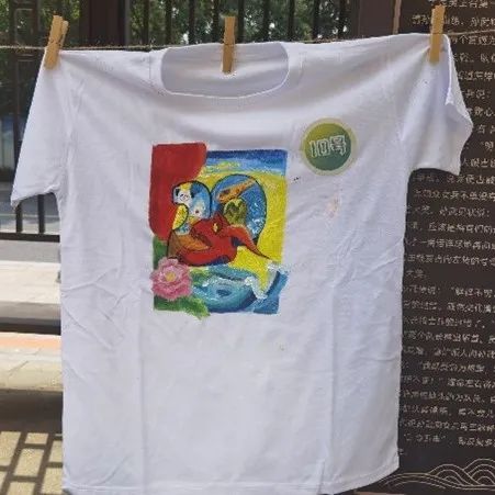 同学们用手中的彩笔在白色T恤上描绘出自己心中美丽的祖国,表达自己对伟大祖国的热爱之情和美好祝福。