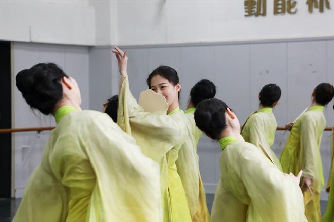 交流中,冯英现场做示范,对学生进行指导,手把手指点学生的动作,从呼吸、姿势等方面详细讲解如何把整套动作做到位,让舞蹈呈现更细腻、连贯。