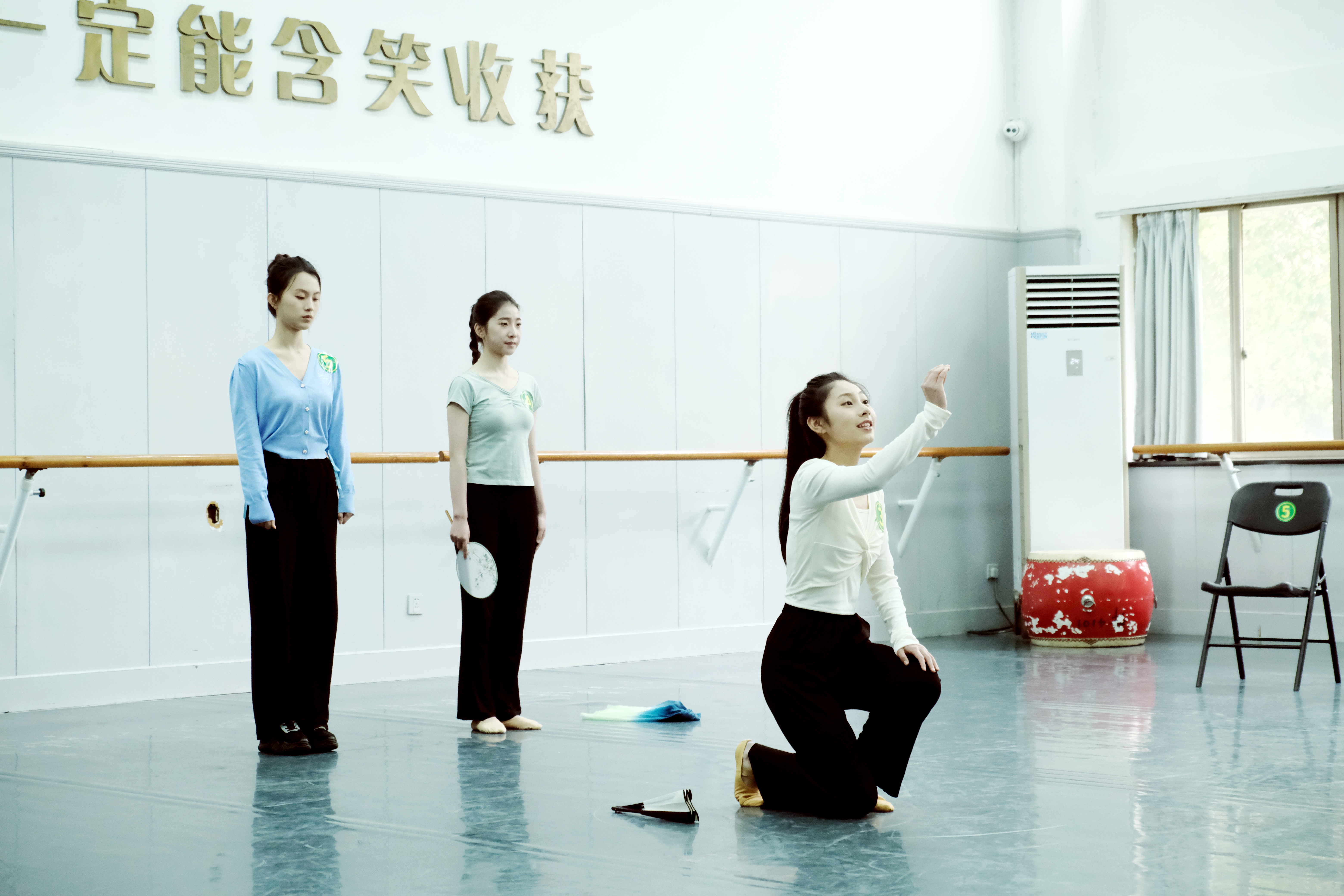 表演艺术专业备考教室内,考生们专心练习快板、舞蹈、朗诵等,一直保持着良好的考试状态。“浙艺是‘艺术家的摇篮’,艺术氛围很好,培养了许多优秀校友,我很喜欢浙艺,希望能在这里学习。”一位来自台州的考生说道。