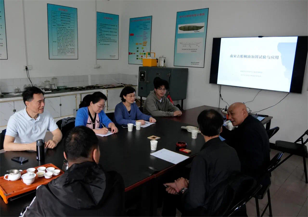 文物修复与保护专业教师潘文娟、李漫参加研讨会。会议主要议题为如何基于古船保护现状的基础上进一步探索适宜的保护修复材料与技术应用,以采取有效措施缓减病害的发展,保持原有结构的完整,从而延长船体的寿命。会议现场针对古船的木材结构类别和病害状况进行论证和分析,对加固材料如桐油的结构、性能以及应用实验等进行数据分析和论证。会议尤其强调文物修复科技保护材料、技术应用的重要性。文物修复技艺的多元化,在传统材料、技术基础上探索科学技术、新材料的融合应用,已成为文物修复与保护技术发展的趋势。