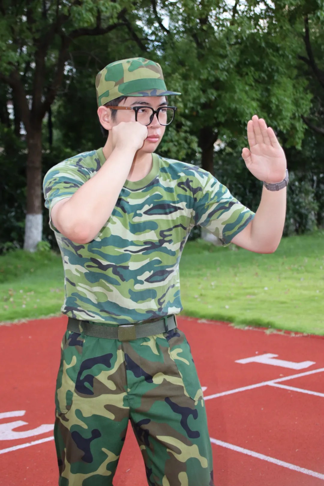 军训像场突如其来的暴晒,把散漫晒成整齐。站军姿时汗湿的衣领,踢正步时磨红的脚踝,军体拳里喊破的嗓子,都是青春最鲜活的注脚。